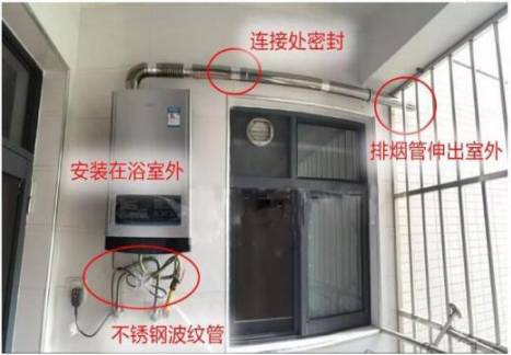 2.《家用燃?xì)馊紵骶甙惭b及驗(yàn)收規(guī)程》 (CJJ12-2013)3.3.4規(guī)定:“燃燒所產(chǎn)生的煙氣應(yīng)排至室外,不得排入封閉的建筑物走廊、陽臺等部位?!?/span>