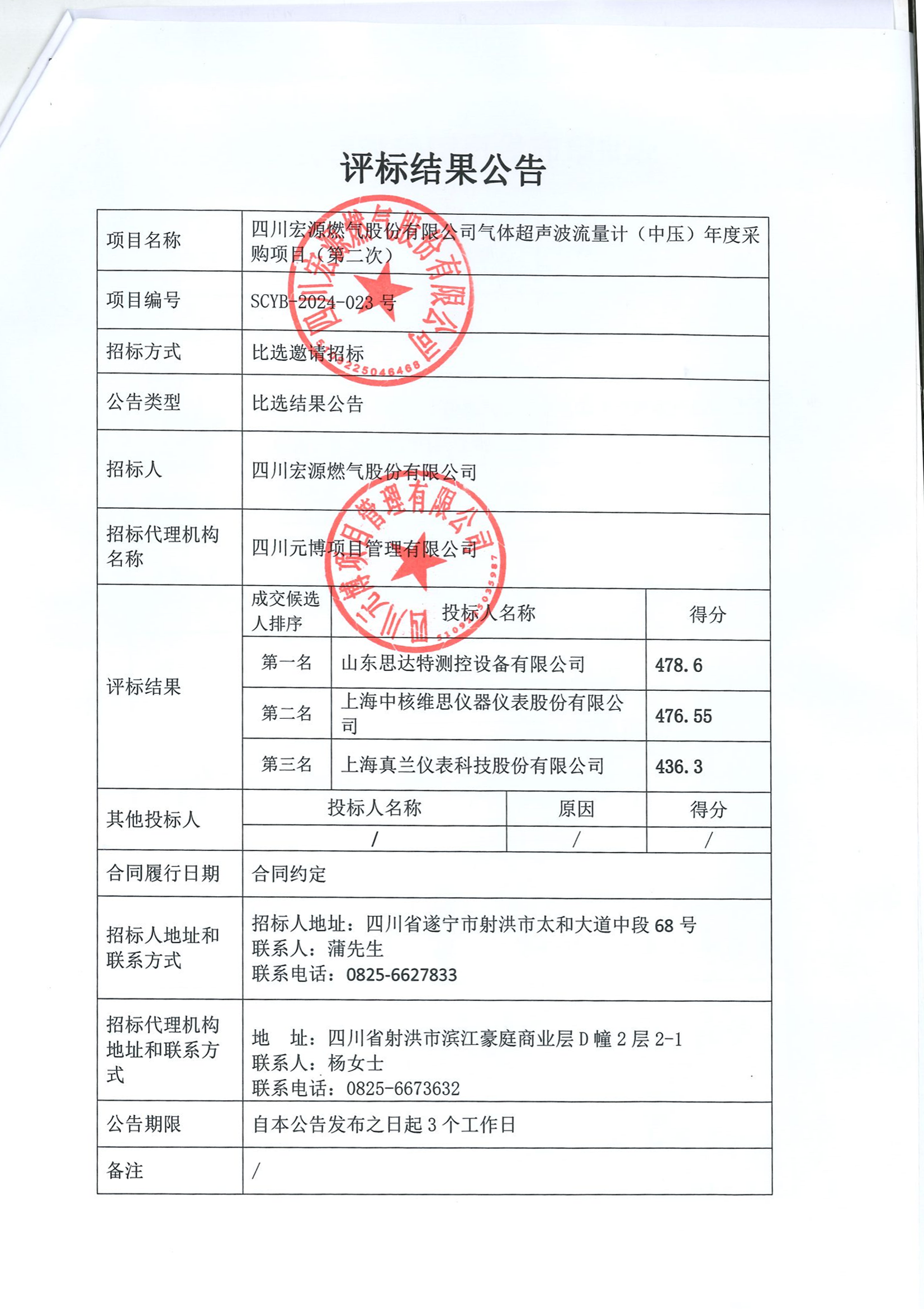 氣體超聲波流量計(jì)(中壓)年度采購(gòu)項(xiàng)目(第二次)評(píng)標(biāo)結(jié)果公告